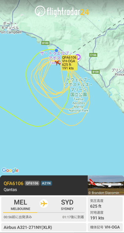 この画像は少しぼやけてますが、カラーリングからご当地QANTASの機材。