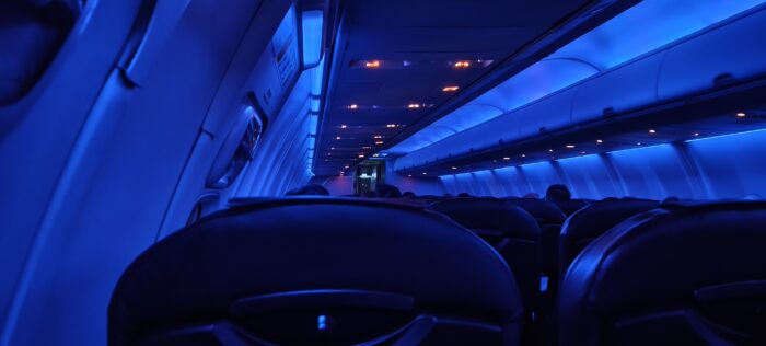 ずっと明るいままのANAより、きっちり減光するJALの機内の方が雰囲気があります!