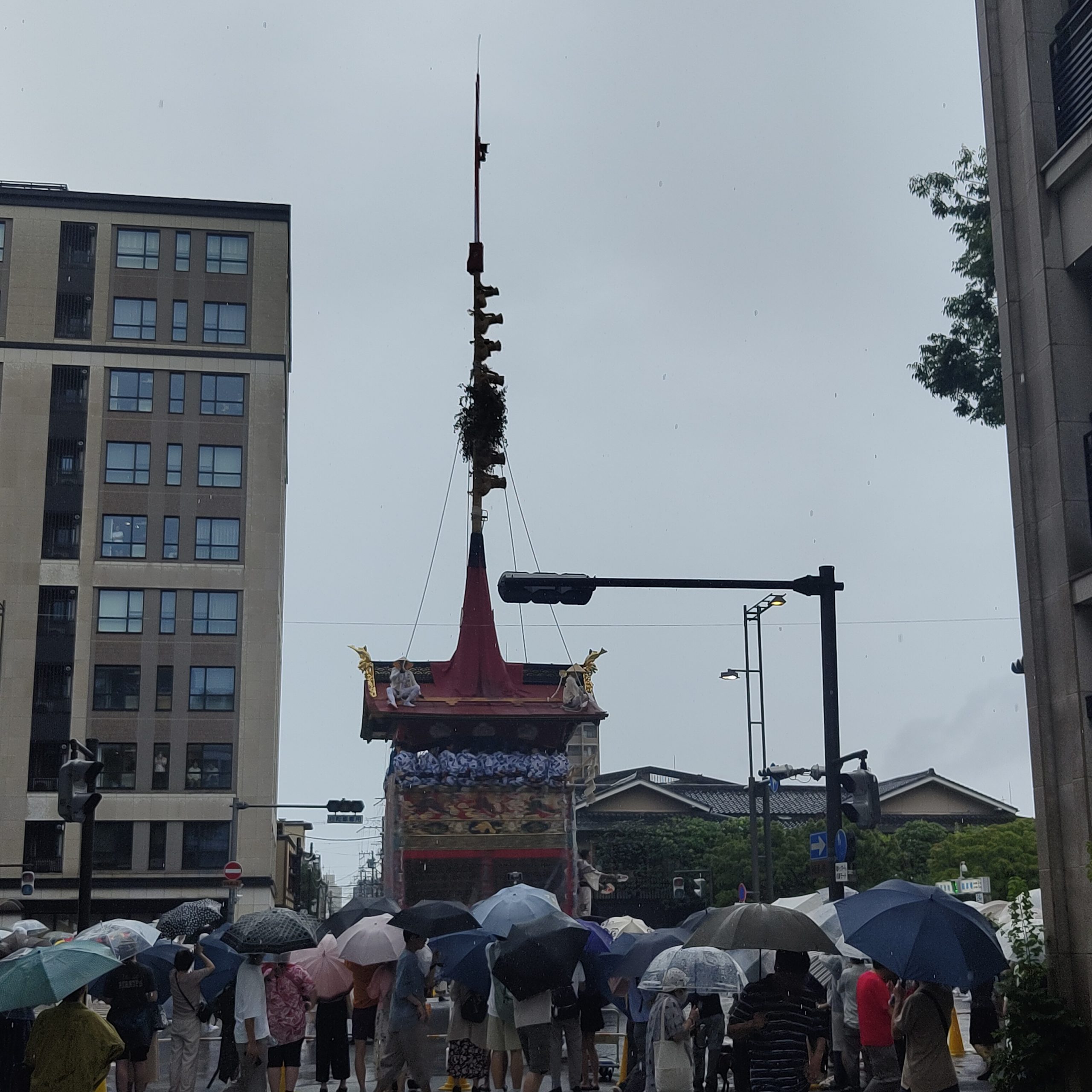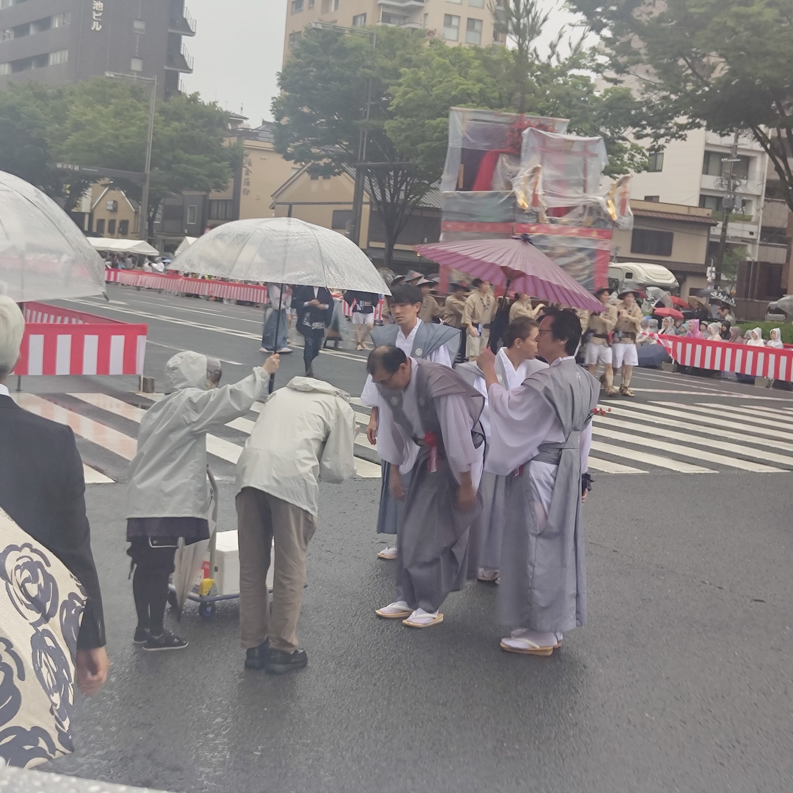 暑くて熱中症を心配するのもだけれど、雨の中の巡行もこれまた大変。観るほうがそんな感覚だけで楽しませてもらってますが、運営する皆さんのご苦労はいかばかりかと・・・