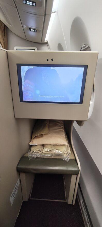 関空からの1便目と同様のスタッガードタイプのビジネスクラス。何機かで回しているようですが関空便はこの初期タイプがアサインされる感じですね~