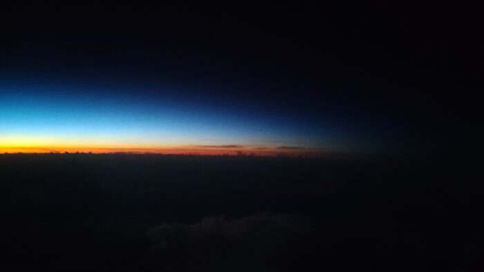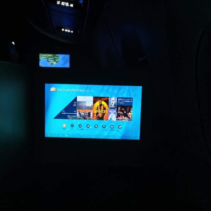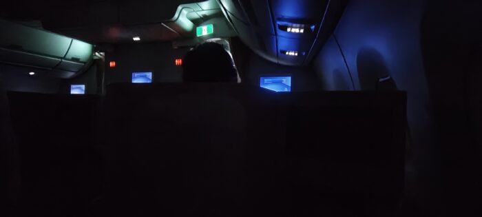 この旅程最後のフライトを楽しもうと思ったけれど、すぐに機内は真っ暗に・・・