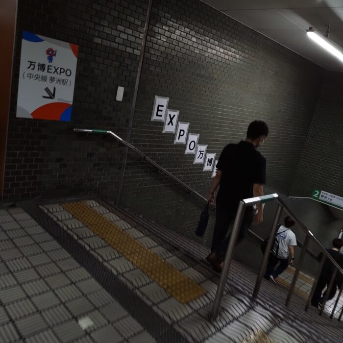 次は目的地の夢洲駅というアナウンスは、万博のテーマソングが流れてきて、否が応でもワクワク感が強まります。