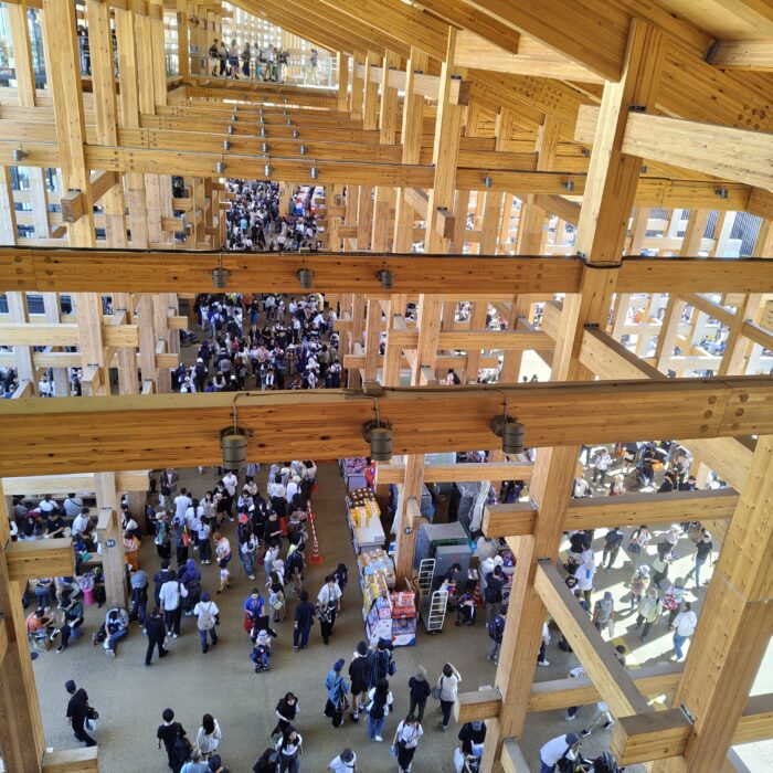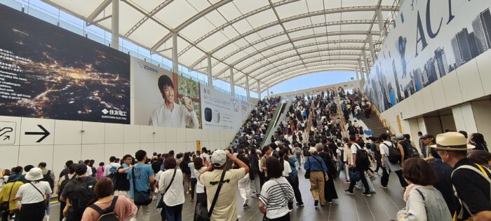 駅からの人がそのまま流れ込むので人だらけなのですが、奥へ進んで比較的行列の少なそうな場所で並びました。空港の手荷物検査のような場所を通りようやく会場内。