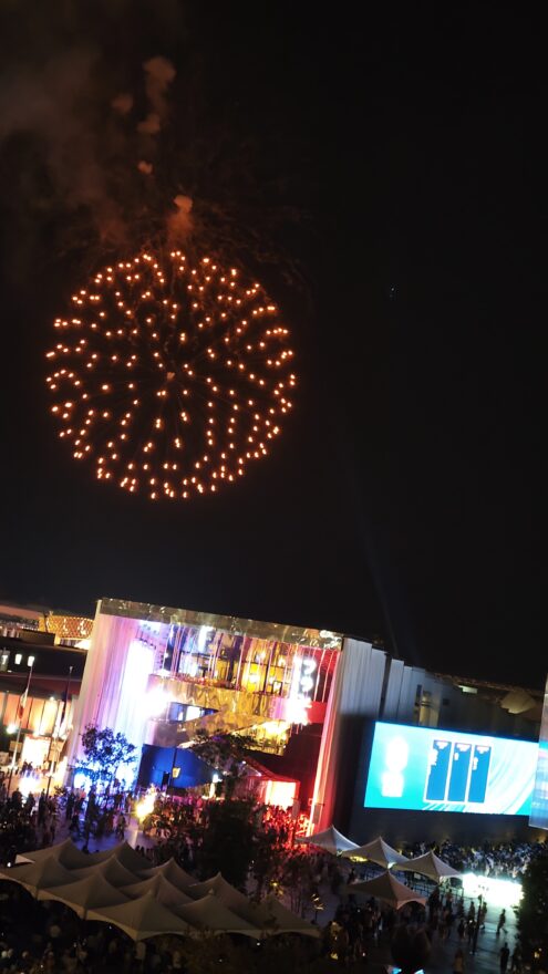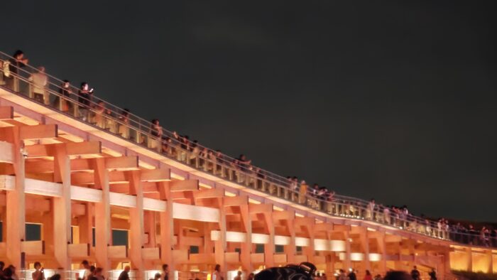 後は再び大屋根リングに上って、花火を見て帰ることにしました。