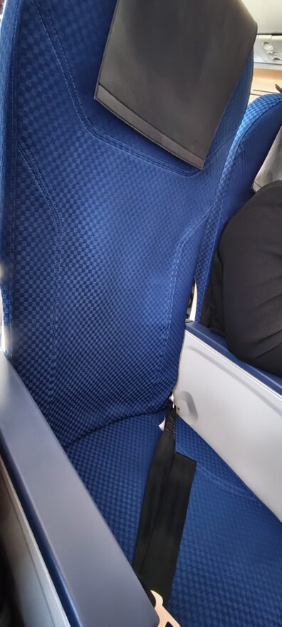 先代に続いて今回もシートの素材が阪急らしくない安っぽい生地。どうして奇をてらうのかな?毛足の長いアンゴラ山羊の上質なシートにすればいいのに・・・