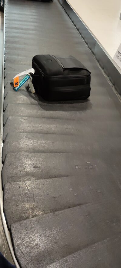 そんな感じで飛行機は新千歳に到着しました。最近、持って歩くのが面倒なので小さなサイズでも手荷物は預けることが多いのですが、珍しくタグ付きで出てきました!